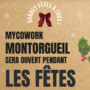 - myCowork Montorgueil : Ouvert toute la période (sauf le 25 décembre et le 1er janvier), avec des horaires aménagés les 24 et 31 décembre (9h-14h).